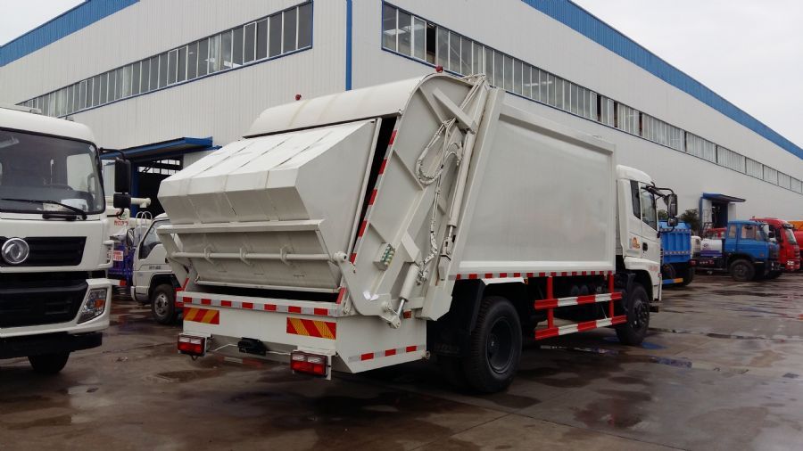 東風D913壓縮式垃圾車底盤配置:原裝東風底盤,軸距3.95米,新款D9方臉駕駛室,寬體帶臥鋪,康明斯4缸160馬力新型發動機或玉柴160馬力發動機,6檔變速箱,3.9噸前橋,8噸后橋,9.00R-20鋼絲胎帶備胎,250等截面大梁,24伏電瓶,帶方向助力,離合助力,氣剎,加強型板簧,帶暖風。
