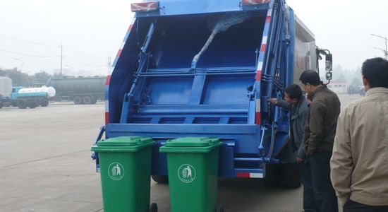 選裝多種翻桶(斗)機構 不同用戶可根據不同的垃圾搜集方式,選裝不同的翻桶(斗)機構:翻標準垃圾鐵桶ZBT59003-88(300 L)、塑料垃圾桶(240L)、隨車小垃圾斗、密封遮蓋式垃圾斗、大垃圾斗。