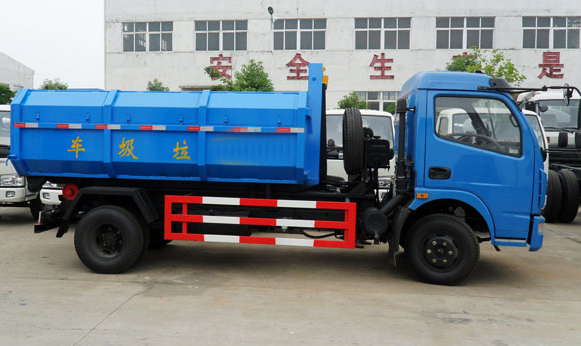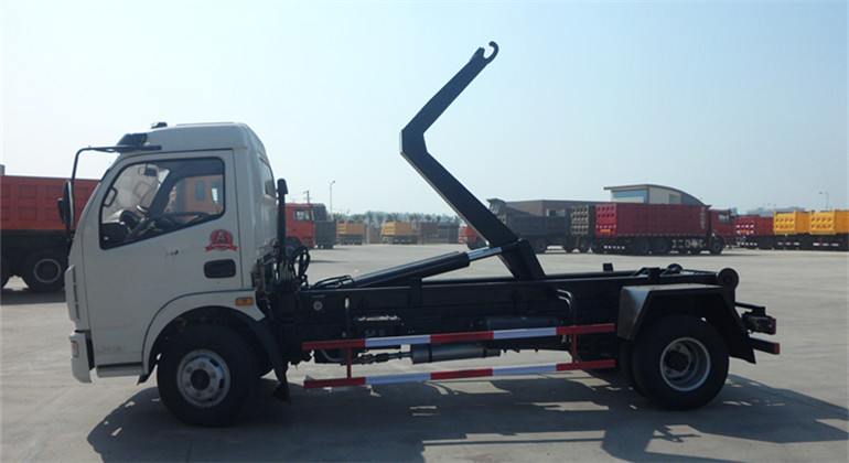 東風多利卡6方勾臂式垃圾車底盤配置:軸距3800,朝柴CY4102-CE4C國五柴油機,120馬力帶渦輪增壓, 大梁192,前橋2.2噸后橋4.2噸后橋速比4.875,輪胎7.50R16,方向助力,斷氣制動,離合器助力,5檔變速箱,東 風大多利卡L寬體駕駛室(可選乳白色或藍色),單排,手動前翻轉(zhuǎn),帶暖風。
