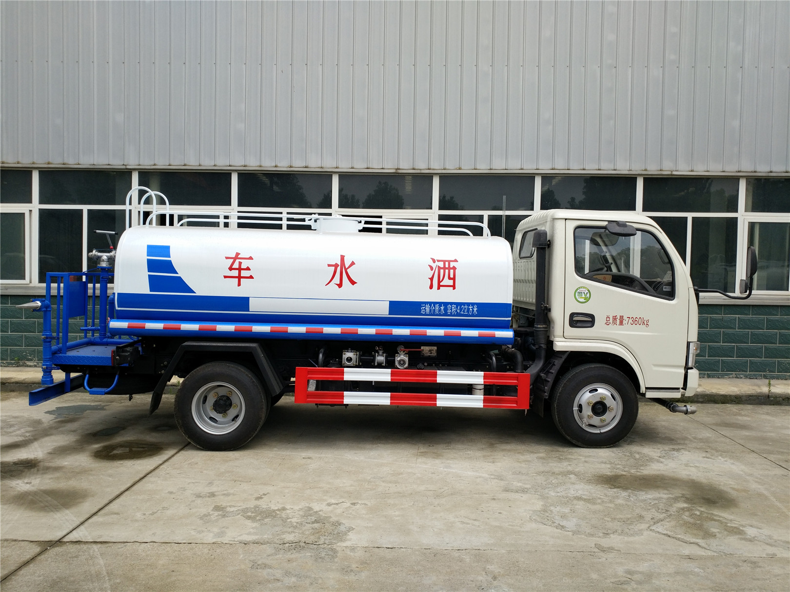 灑水車又稱為:多功能灑水車、綠化噴灑車。主要用于城市道路、廠區路面、園林綠化澆水、農藥噴灑等,以達到美化環境的作用。灑水車由以下幾部分組成:專用車底盤、罐體、管道系統、操作系統。